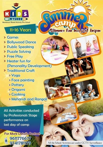 CALL NOW : +91 9741781179 FOR ENROLMENT : +91 9611776677 Email : kidsofmysuru@gmail.com Website : www.kidsofmysuru.com